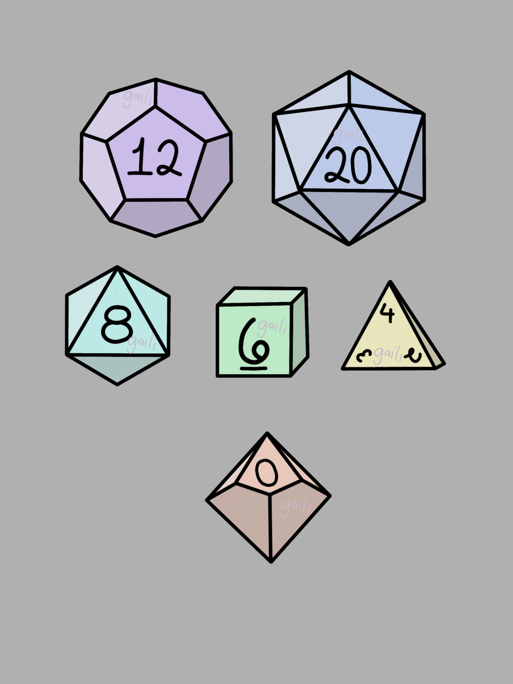 emotes of the various common die used in dungeons and dragons, correctly sized to 112x112 for upload to twitch